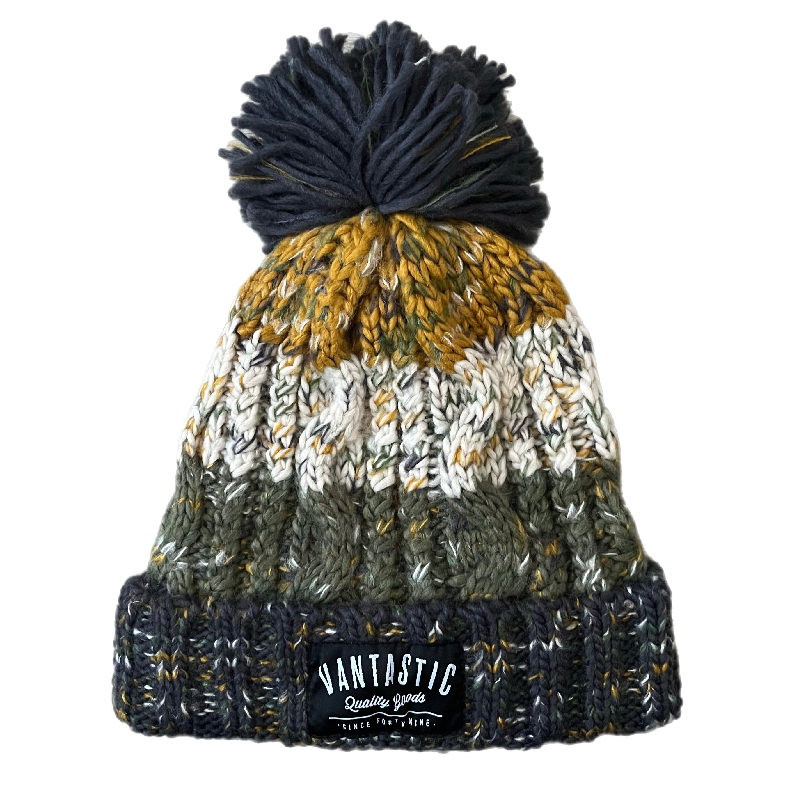 Our ‘Cohesion’ bobble hat is always a popular choice. Heavy weight multi yarn cable knit with fleece lining and a woven Vantastic label.